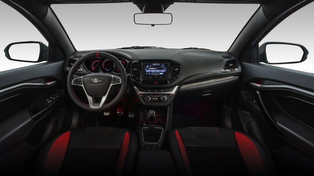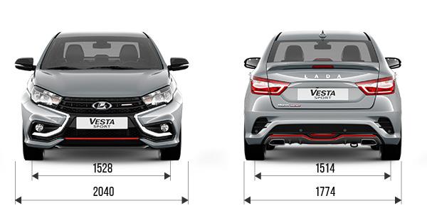 У LADA Vesta Sport свой специальный цвет - Тайфун - цвет несокрушимой силы, мощной стихии, запредельной скорости, цвет ветра. Фирменный Х-стиль сохранился, но стал более выразительным и динамичным. Яркие красные линии по кузову, увеличенные колесные арки, колеса 17/18 дюймов, компактный спойлер на крышке багажника (вместимостью 480л, кстати!), две выхлопные трубы, хромированные вставки на переднем бампере, колея передних/задних колес составляет 1528/1514мм соответственно. Разгон до сотни за 9,6с.